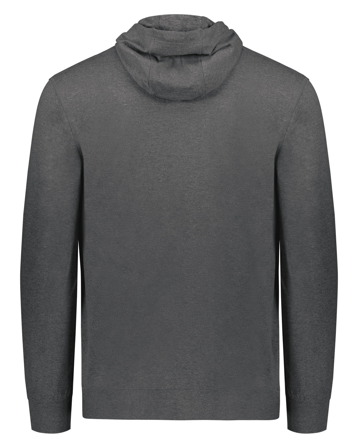 6.3 oz., Solids: 89% Recycled polyester, 11% spandex; Heathers: 45% Recycled polyester, 44% polyester, 11% spandex; Wicks moisture; Three-panel crossover hood; Side seam pockets; Side seam pockets ; Set-in sleeves; Tag-free label