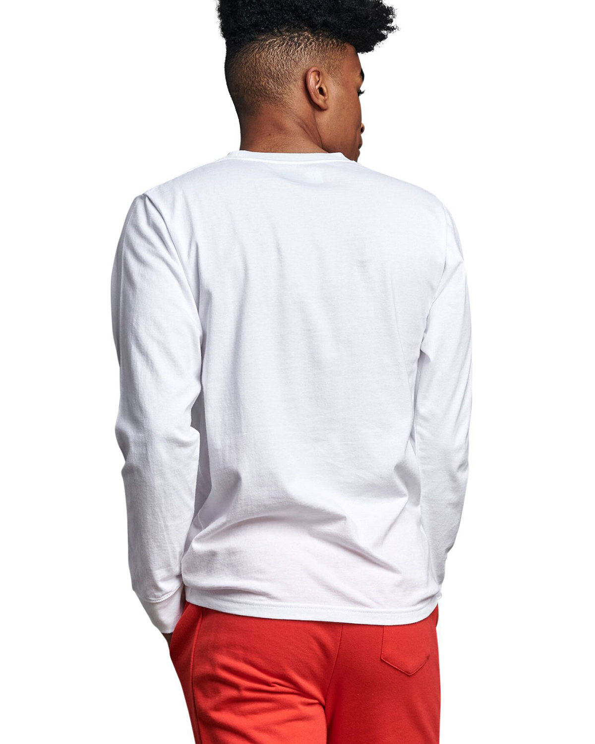 6 oz., 100% cotton; Athletic Heather: 90% carded cotton, 10% polyester; Heavyweight combed ring-spun cotton with superior softness; Made with sustainably sourced USA grown cotton; Seamless 1×1 rib collar and cuffs ; Shoulder-to-shoulder taping ; Double-ne