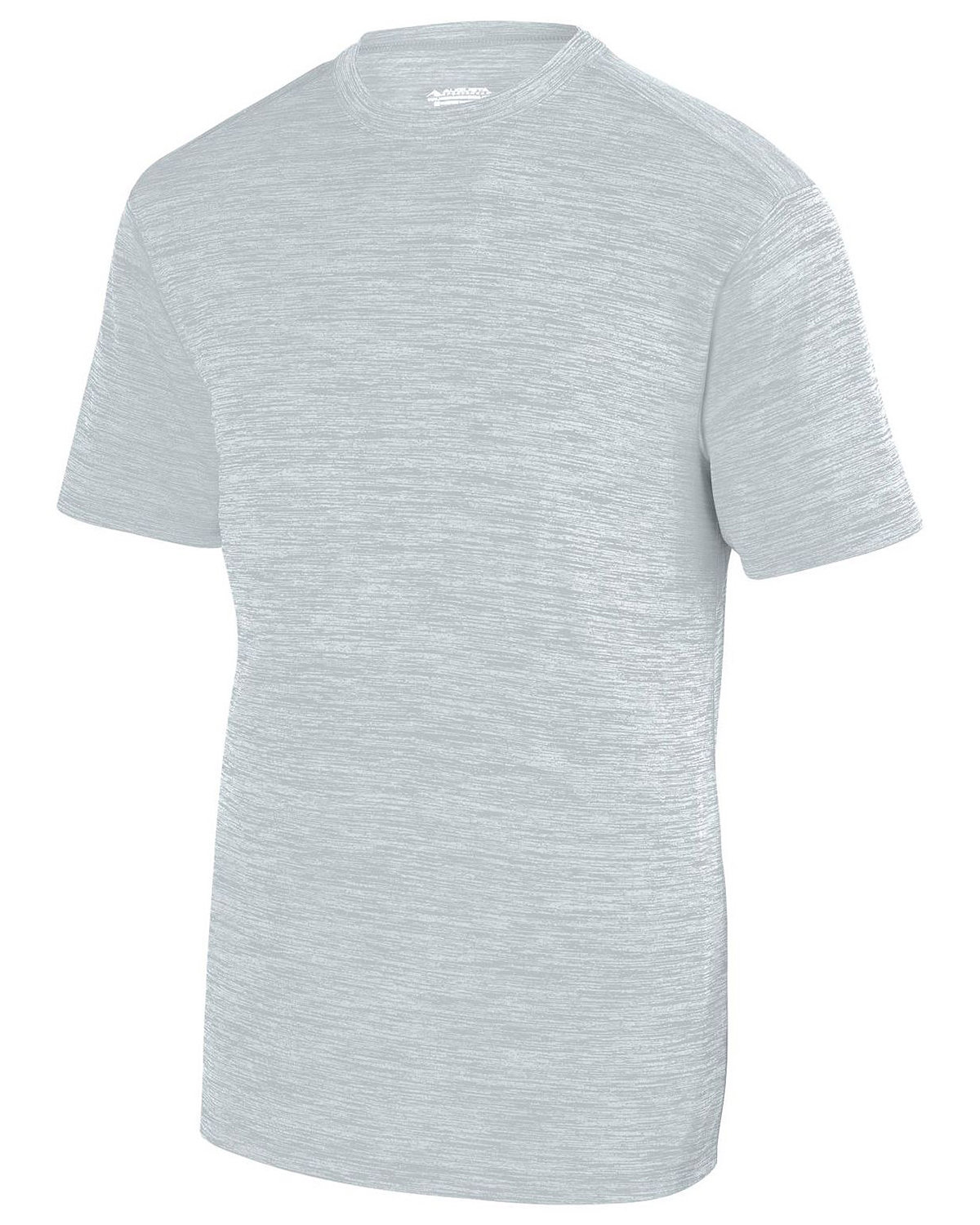 100% polyester heathered wicking knit ; Wicks moisture away from the body ; Pad print label ; Self-fabric crewneck collar; Set-in sleeves ; Double-needle hemmed bottom and sleeves.